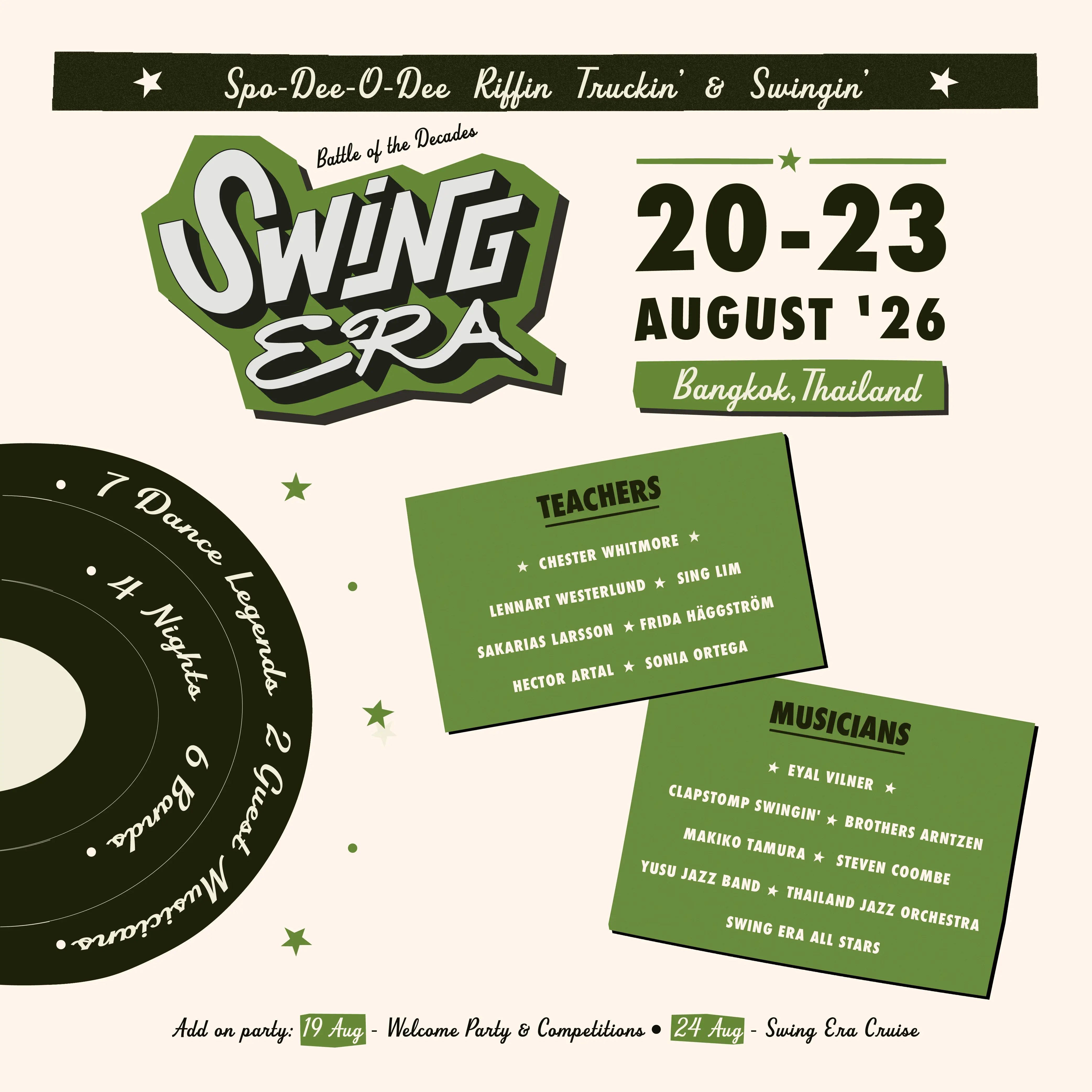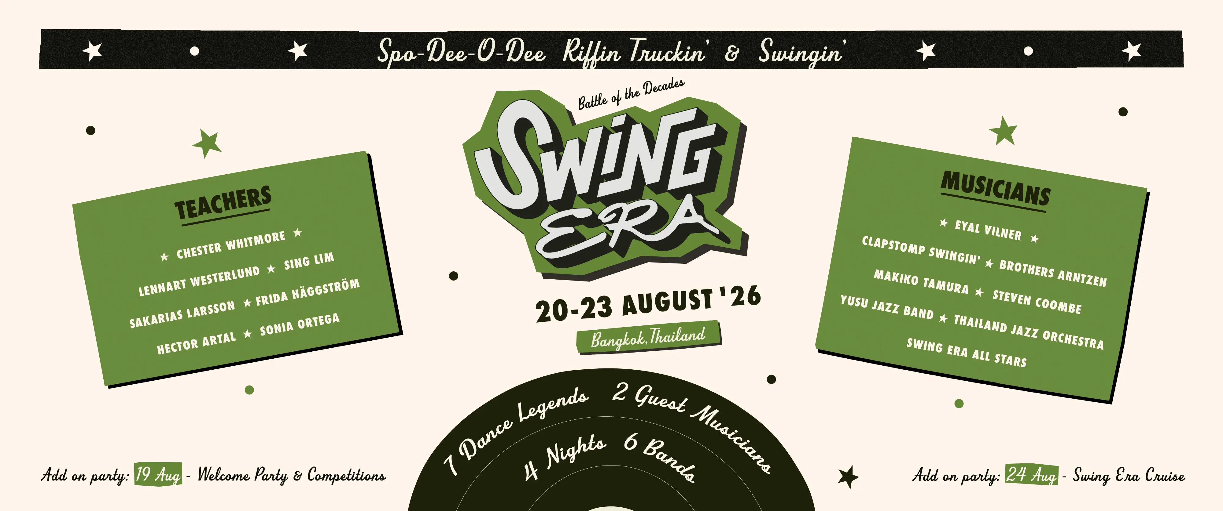6 Live Bands 7 International Instructors and non-stop 21 set of Live band parties!